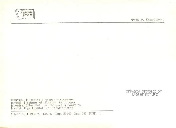 Irkutsk Fremdsprachen-Institut Irkutsk postalisch nicht gelaufen 1967 Erhaltung siehe scans [FriedD77] Frierer
