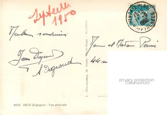 Irun_ES Vue générale postalisch gelaufen 1950 Erhaltung siehe scans [FriedD77] Frierer