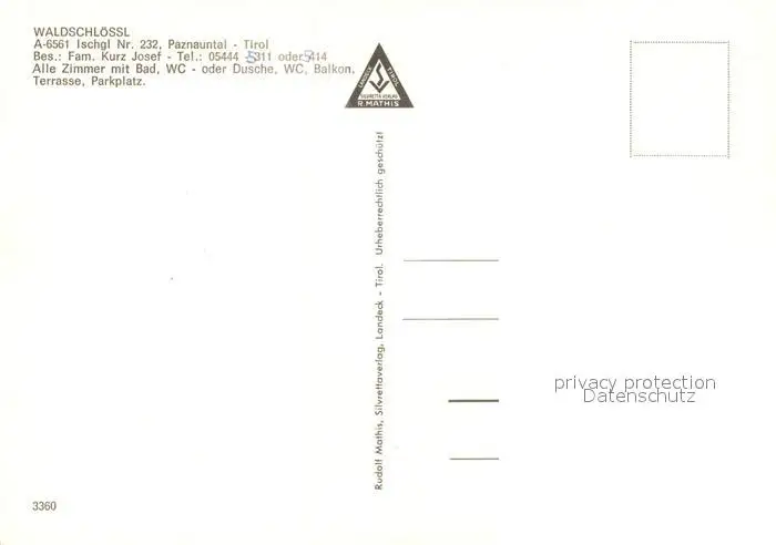 Ischgl Waldschl?ssl Hotel Ischgl postalisch nicht gelaufen nach 1965 Erhaltung siehe scans [LiesaD40] LiesID40