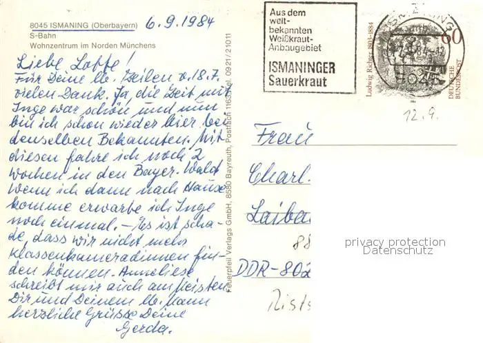 Ismaning Teilansichten Hallenbad Kirche Maibaum Ismaning postalisch gelaufen 1984 Erhaltung siehe scans [FriedD77] Frierer