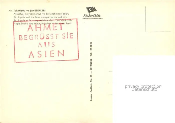 Istanbul_Constantinopel Hagia Sophia Blaue Moschee Istanbul_Constantinopel postalisch nicht gelaufen nach 1965 Erhaltung siehe scans [PaolaD17] PaolPID1