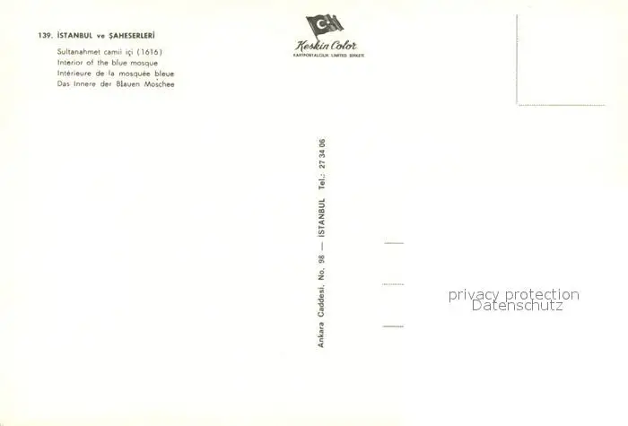 Istanbul_Constantinopel Sultanahmet camii ici Istanbul_Constantinopel postalisch nicht gelaufen nach 1965 Erhaltung siehe scans [PaolaD17] PaolPID1