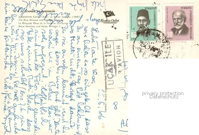 Istanbul_Constantinopel_TK Blaue Moschee und Kaiser Wilhelm II postalisch gelaufen 1966 Erhaltung siehe scans [WerneD78] WernPID7