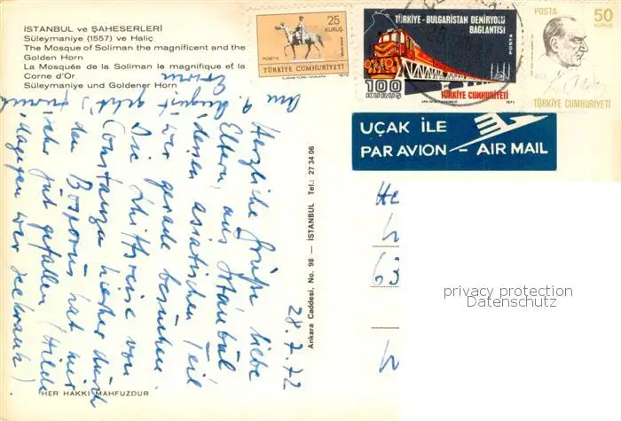 Istanbul_Constantinopel_TK Mosque of Soliman and the Golden Horn postalisch gelaufen 1972 Erhaltung siehe scans [FriedD77] Frierer