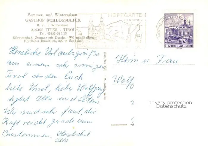 Itter_Tirol Gasthof Schlossblick Itter Tirol postalisch gelaufen nach 1965 Erhaltung siehe scans [PaolaD17] PaolPID1