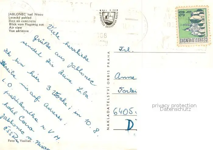 Jablonec_nad_Nisou Fliegeraufnahme Teilansicht Jablonec_nad_Nisou postalisch gelaufen 1968 Erhaltung siehe scans [LiesaD40] LiesID40