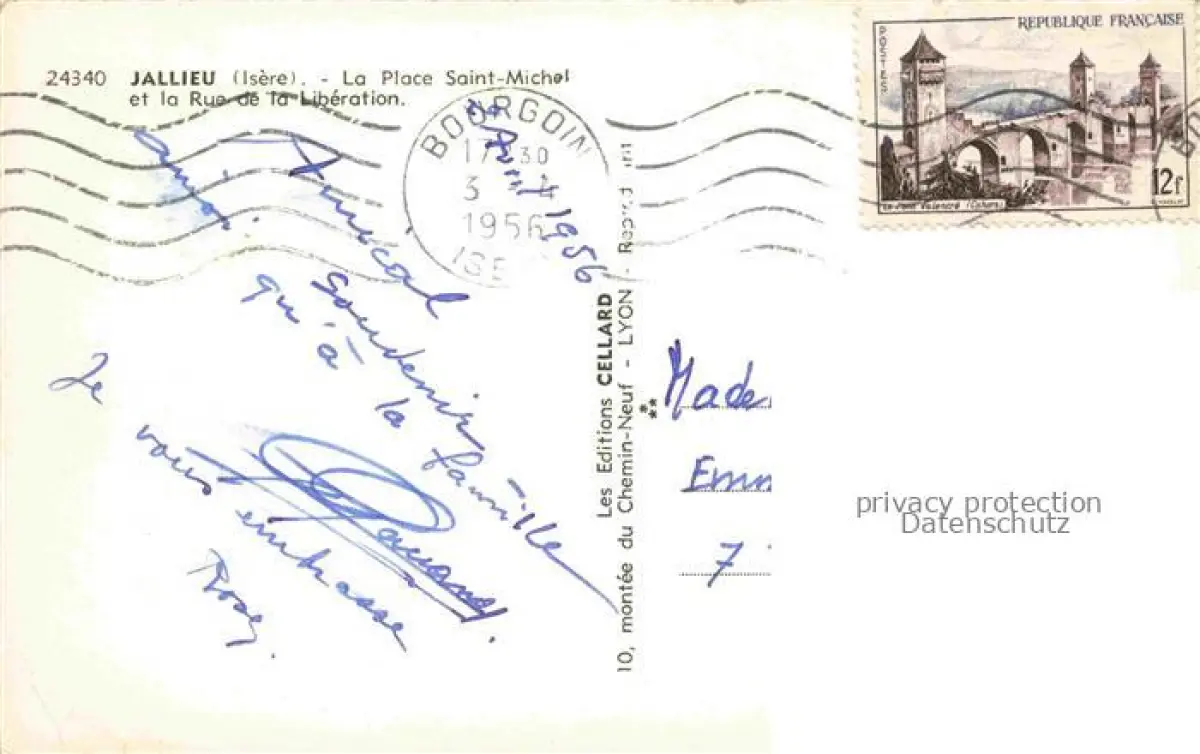 Jallieu Bourgoin-Jallieu 38 Isere Place Saint-Michel et Rue de la Libération postalisch gelaufen Erhaltung siehe scans [FriedD77] alte Postkarte Frie Katcode 11170038238053