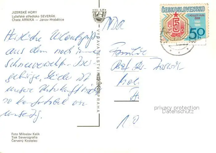 Janov_nad_Nisou Chata Arnika Jizerske hory Bergbaude Isergebirge im Winter Janov_nad_Nisou postalisch gelaufen 1987 Erhaltung siehe scans [FriedD77] Frierer