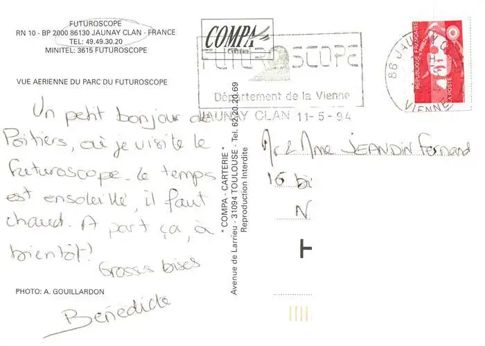 Jaunay-Clan Vue aérienne du Parc du Futuroscope Jaunay-Clan postalisch gelaufen 1994 Fliegeraufnahme Erhaltung siehe scans [FriedD77] Fliegeraufnahme Frierer