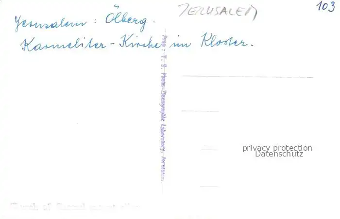 Jerusalem Yerushalayim Israel Karmeliter Kirche im Kloster postalisch nicht gelaufen Erhaltung siehe scans [WerneD78]