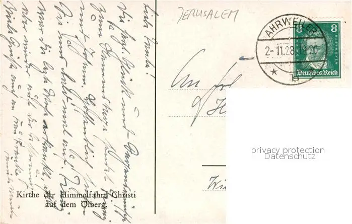 Jerusalem_Yerushalayim Kirche der Himmelfahrt Christi auf dem oelberg Jerusalem_Yerushalayim postalisch gelaufen 1928 Erhaltung siehe scans [WerneD78] WernPID7