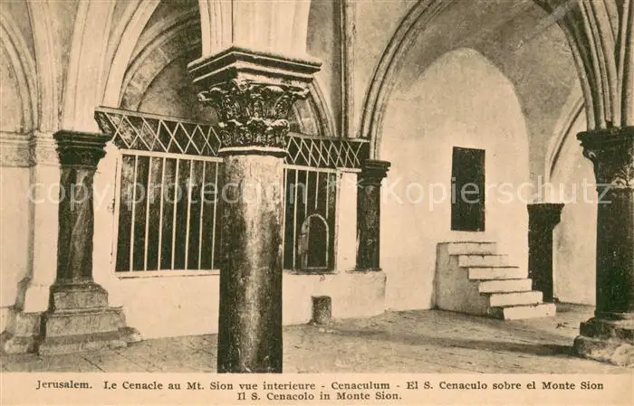 Jerusalem_Yerushalayim Le Cenacle au Mont Sion vue intérieur Jerusalem_Yerushalayim postalisch nicht gelaufen 1930 Erhaltung siehe scans [FriedD77] Frierer