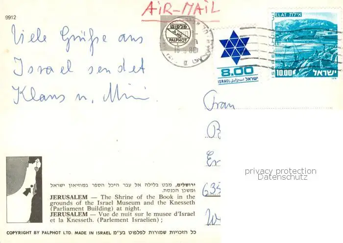 Jerusalem_Yerushalayim Shrine of the Book and Knesseth Building Jerusalem_Yerushalayim postalisch gelaufen 1980 Erhaltung siehe scans [LiesaD40] LiesID40