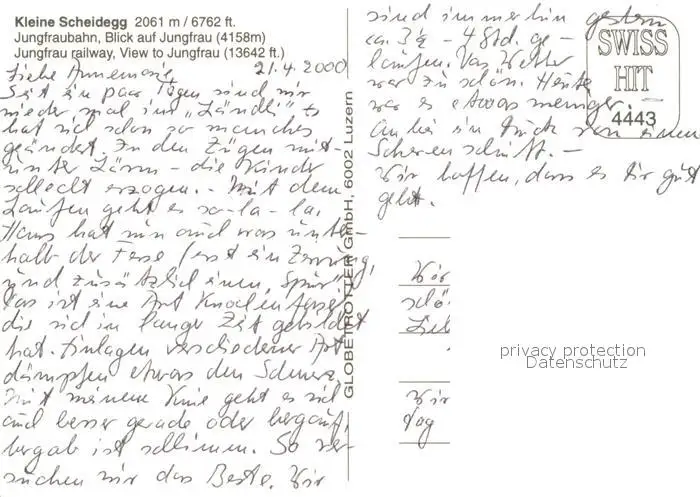 Jungfraubahn Kleine Scheidegg Jungfrau Jungfraubahn postalisch nicht gelaufen 2000 Erhaltung siehe scans [PaolaD17] PaolPID1