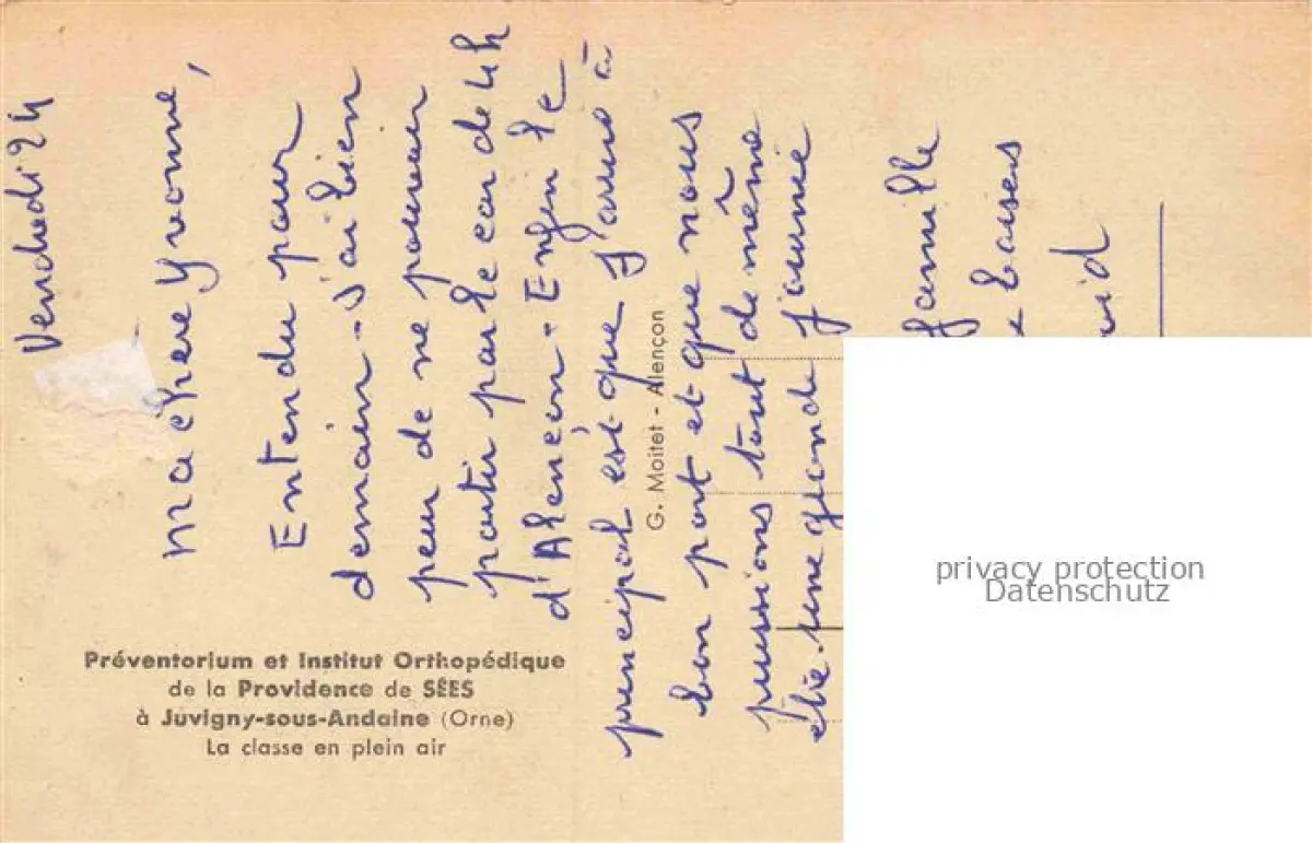14103166 Juvigny-sous-Andaine Alencon 61 Orne Préventorium et Institut Orthepédique la classe en plein air postalisch nicht gelaufen Erhaltung siehe scans [FriedD77] Frie Katcode 11170061161211