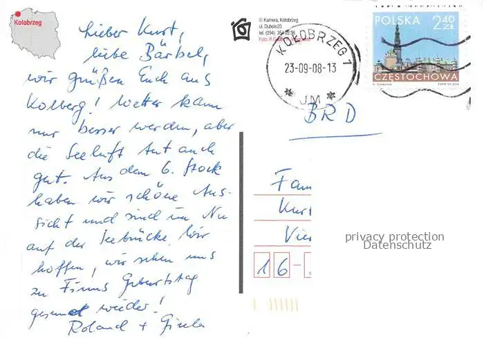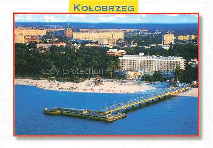 old postcard KOLOBRZEG Kolberg Ostseebad PL Hotel Strand Seebruecke postalisch gelaufen Fliegeraufnahme Erhaltung siehe scans [FriedD77]