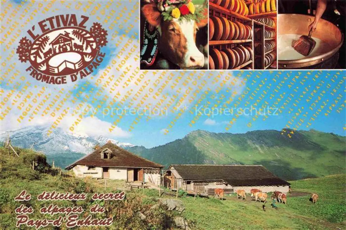AK / Ansichtskarte Kaese Kaeserei Cheese Fromage Queso L Etivaz Alpes vaudoises Altitude Kuhstall Kuehe