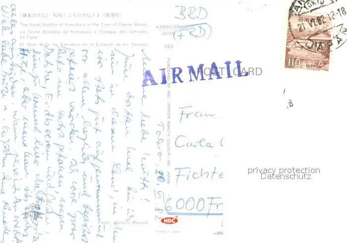 Kamakura The Great Buddha in the Time of Cherry Bloom Kamakura postalisch gelaufen 1982 Erhaltung siehe scans [WerneD78] WernPID7