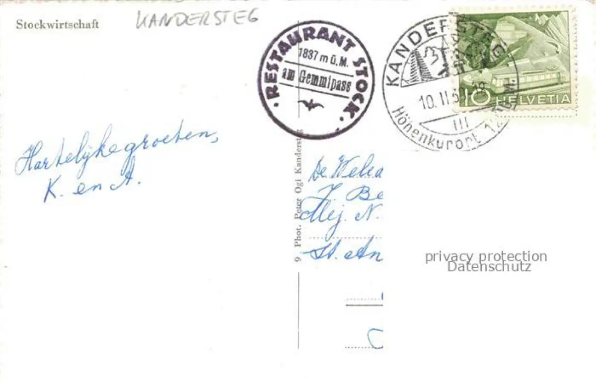 alte Postkarte Kandersteg BE Stockwirtschaft im Winter Skigebiet Berner Alpen postalisch gelaufen Erhaltung siehe scans [FriedD77]