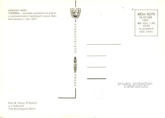 Karlovy_Vary Thermalbad Sanatorium Restaurant Stadtpanorama Karlovy Vary postalisch nicht gelaufen nach 1965 Erhaltung siehe scans [FriedD77] Frierer