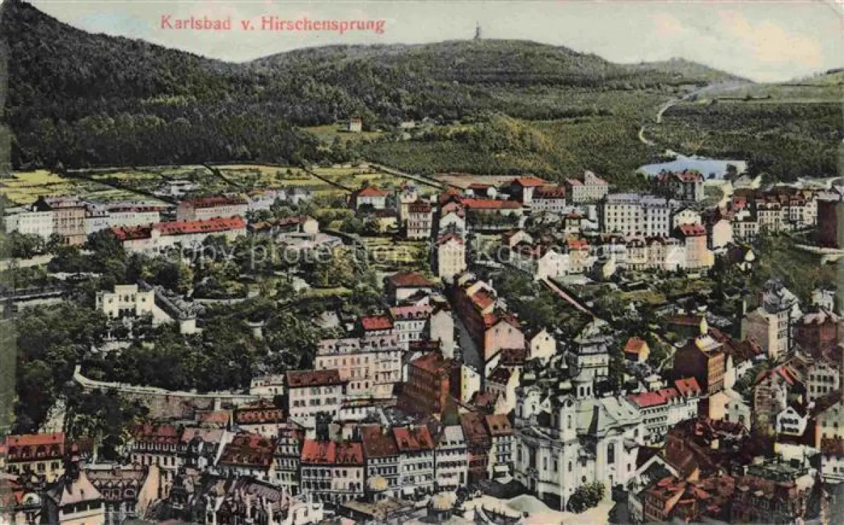 alte Postkarte Karlsbad Eger KARLOVY VARY CZ Panorama Blick vom Hirschensprung postalisch gelaufen Erhaltung siehe scans [FriedD77]