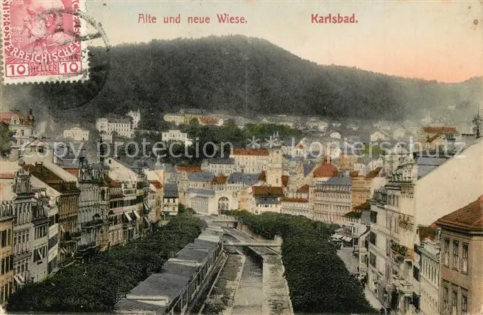 Karlsbad_Eger Alte und Neue Wiese Karlsbad_Eger postalisch gelaufen bis 1920 Erhaltung siehe scans [PaolaD17] PaolPID1