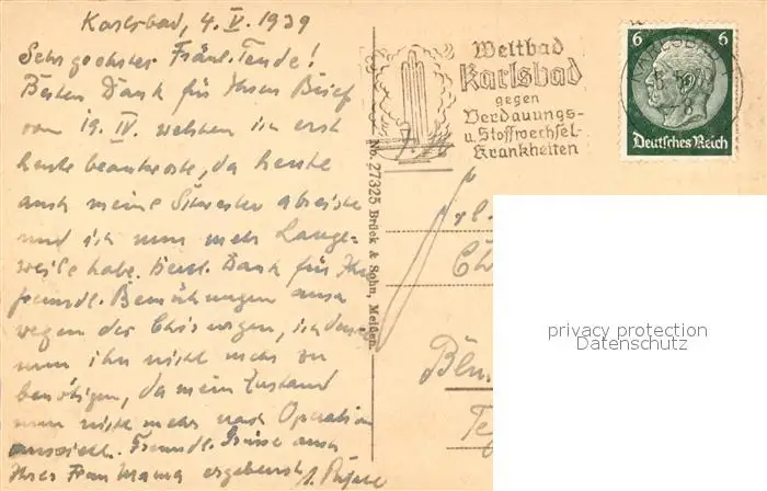 Karlsbad_Eger Marktbrunn mit Stadtturm Karlsbad_Eger postalisch gelaufen 1939 Erhaltung siehe scans [WerneD78] WernPID7