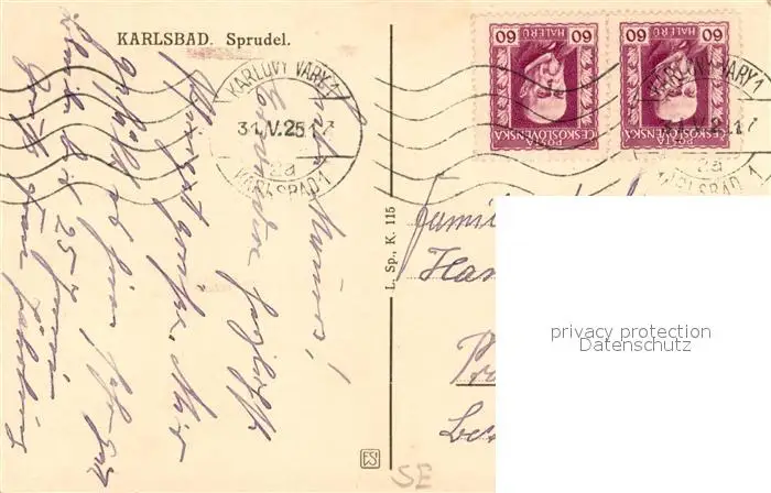 Karlsbad_Eger Sprudel Karlsbad_Eger postalisch gelaufen 1925 Erhaltung siehe scans [WerneD78] WernPID7