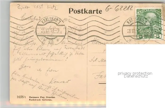 Karlsbad_Eger Sprudel Karlsbad_Eger postalisch gelaufen 1919 Erhaltung siehe scans [PaolaD17] PaolPID1