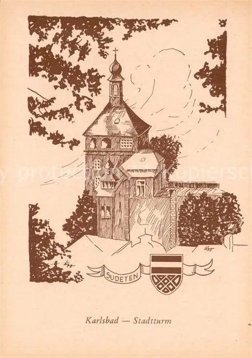 Karlsbad_Eger_Karlovy_Vary Stadtturm postalisch nicht gelaufen 1921-1965 Erhaltung siehe scans [LiesaD40] LiesID40