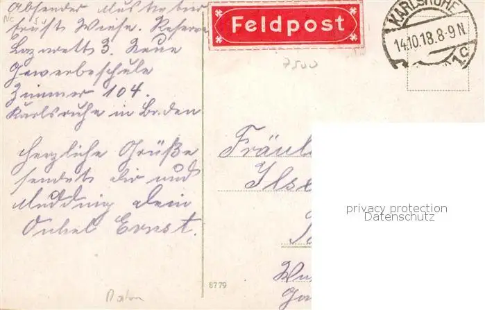 Karlsruhe_Baden Grossherzogliches Schloss Feldpost Karlsruhe_Baden postalisch gelaufen 1918 Erhaltung siehe scans [FriedD77] Frierer