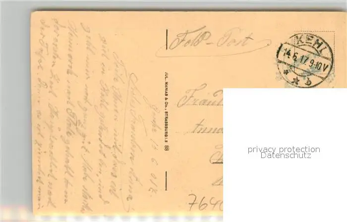 Kehl_Rhein Kirche mit Stadtweiher Kehl_Rhein postalisch gelaufen 1917 Feldpost Erhaltung siehe scans [LiesaD40] Feldpost LiesID40