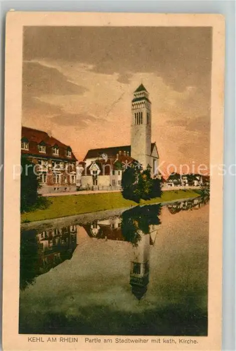 Kehl_Rhein Stadtweiher mit Kath. Kirche Kehl_Rhein postalisch nicht gelaufen bis 1920 Erhaltung siehe scans [LiesaD40] LiesID40