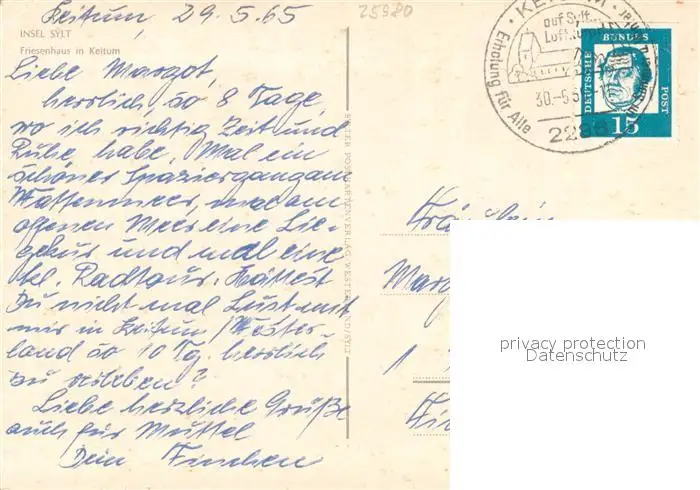 Keitum_Sylt Friesenhaus Keitum Sylt postalisch gelaufen 1965 Erhaltung siehe scans [WerneD78] WernPID7