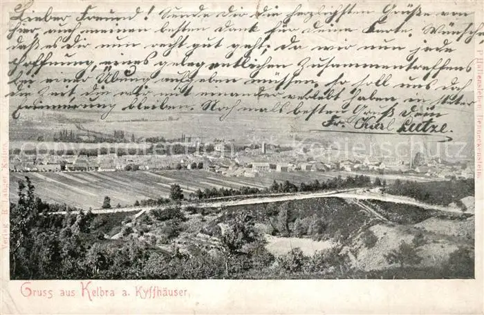 Kelbra_Kyffhaeuser Landschaftspanorama Kelbra Kyffhaeuser postalisch gelaufen 1908 Erhaltung siehe scans [FriedD77] Frierer