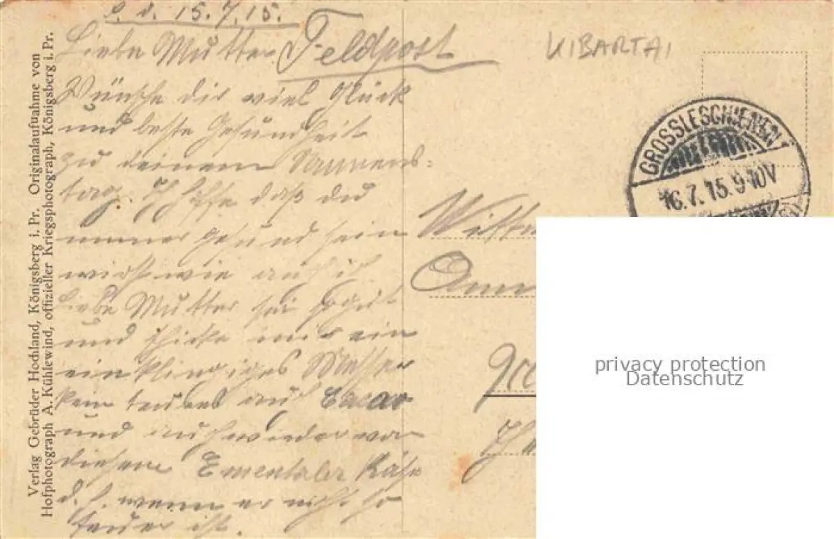 alte Postkarte Kibarty Kibartai Virbalis Wirballen Marijampoles Apskritis Lithuania Die zerstoerte russische Grenzstadt Der Krieg im Osten Truemmer 1. Weltkrieg postalisch gelaufen Erhaltung siehe scans [FriedD77]