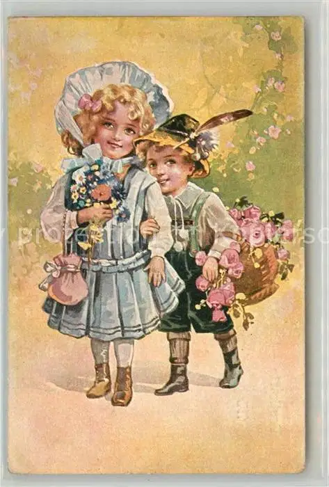 Kinder_Child_Enfants Glueckwunsch Hutmode Blumen Kinder_Child_Enfants postalisch gelaufen bis 1920 Erhaltung siehe scans [PaolaD17] PaolPID1