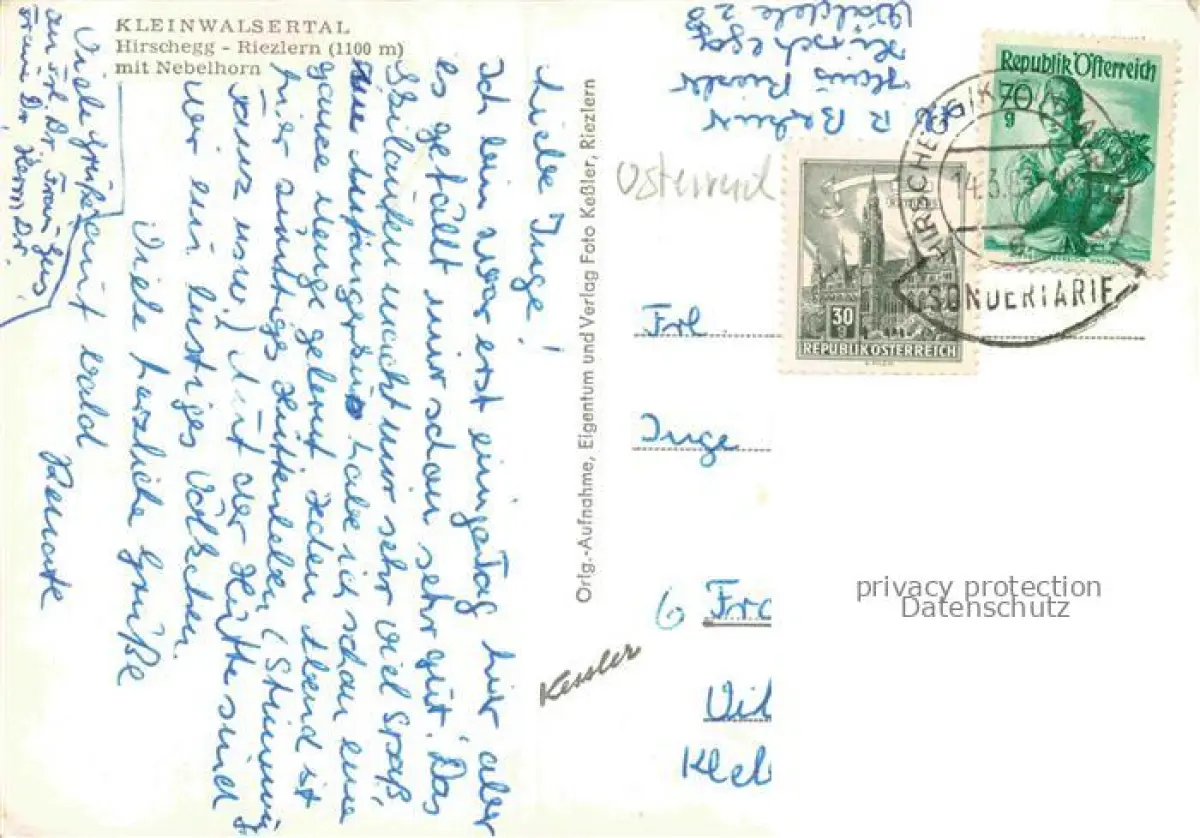 alte Postkarte Kleinwalsertal Vorarlberg AT mit Hirschegg Riezlern und Nebelhorn postalisch gelaufen Erhaltung siehe scans [WerneD78]