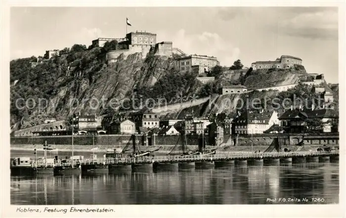 Koblenz_Rhein Schiffbruecke Festung Ehrenbreitstein Koblenz_Rhein postalisch nicht gelaufen 1921-1965 Erhaltung siehe scans [FriedD77] Frierer