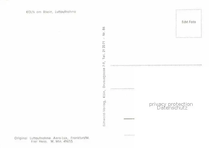 Koeln Rhein Fliegeraufnahme mit Dom Koeln postalisch nicht gelaufen 1921-1965 Erhaltung siehe scans [WerneD78] WernPID7