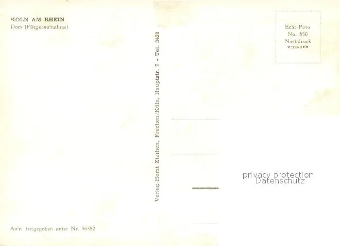 Koeln_Rhein Dom Fliegeraufnahme Koeln_Rhein postalisch nicht gelaufen 1921-1965 Erhaltung siehe scans [WerneD78] WernPID7