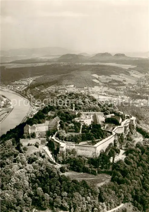 Koenigstein_Saechsische_Schweiz Festung Koenigstein Fliegeraufnahme Koenigstein_Saechsische postalisch nicht gelaufen nach 1965 Erhaltung siehe scans [FriedD77] Frierer