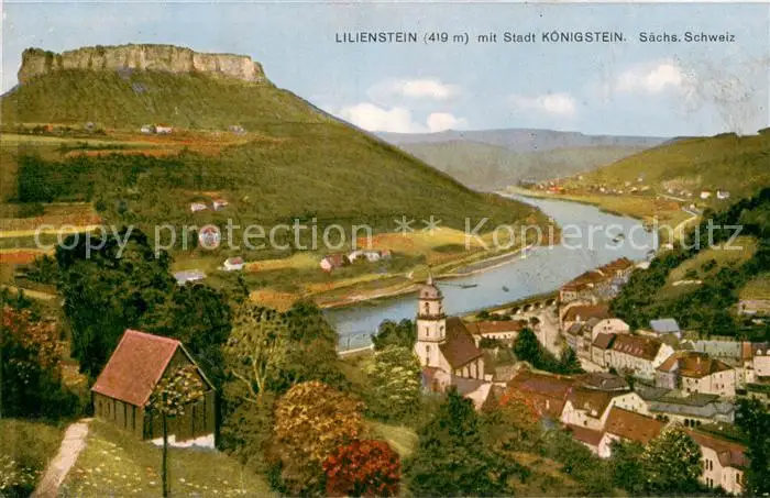 AK / Ansichtskarte Koenigstein_Saechsische_Schweiz Lilienstein mit Stadt Koenigstien Koenigstein_Saechsische