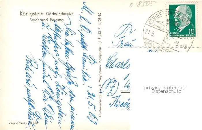 Koenigstein_Saechsische_Schweiz Stadt und Festung Koenigstein_Saechsische postalisch gelaufen 1963 Erhaltung siehe scans [WerneD78] WernPID7