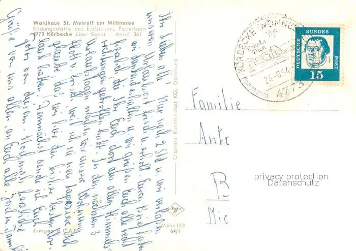 Koerbecke_Moehnesee St. Meinolf am Moehnesee Koerbecke Moehnesee postalisch gelaufen 1964 Erhaltung siehe scans [LiesaD40] LiesID40