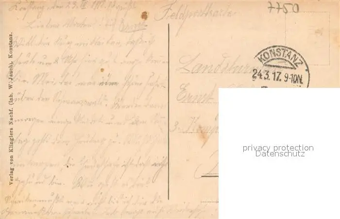 Konstanz_Bodensee vom Ballon Bodensee aus gesehen Konstanz_Bodensee postalisch gelaufen 1917 Feldpost Erhaltung siehe scans [FriedD77] Feldpost Frierer