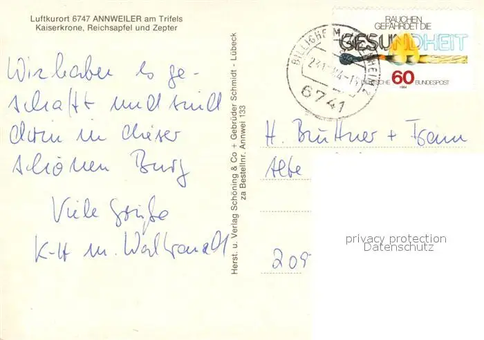 Krone_Koenigshaeuser Annweiler Trifels Kaiserkrone Reichsapfel Zepter Krone Koenigshaeuser postalisch gelaufen nach 1965 Erhaltung siehe scans [PaolaD17] PaolPID1