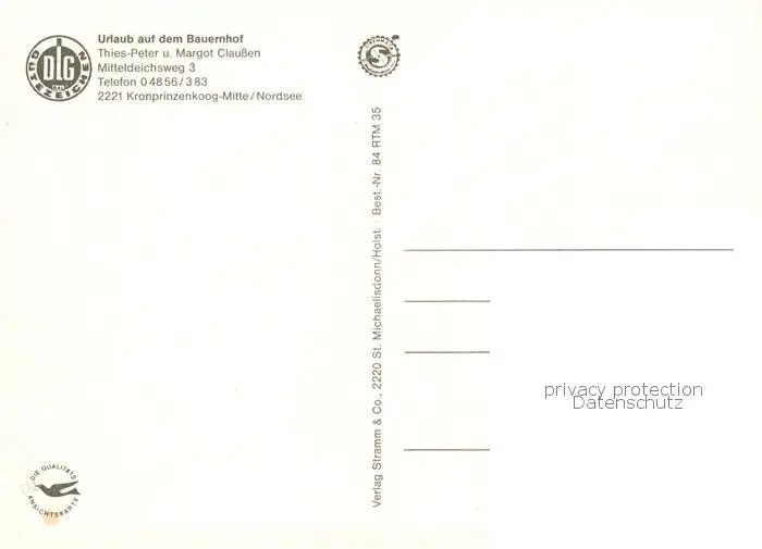 Kronprinzenkoog Urlaub auf dem Bauernhof Claussen Kronprinzenkoog postalisch nicht gelaufen nach 1965 Erhaltung siehe scans [WerneD78] WernPID7