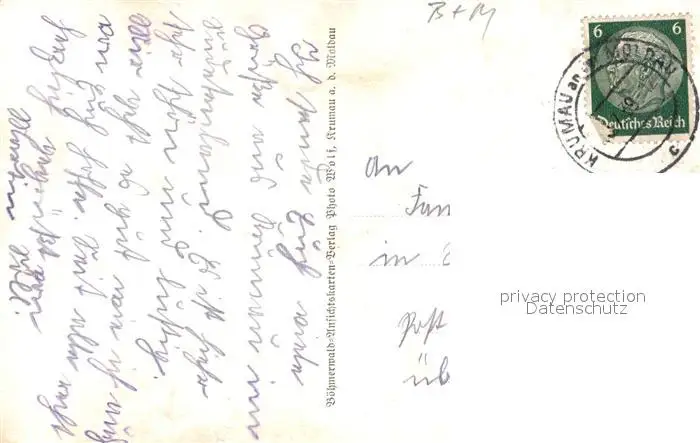 Krumau_Tschechien Ortsansicht mit Kirche Krumau Tschechien postalisch gelaufen 1939 Erhaltung siehe scans [FriedD77] Frierer