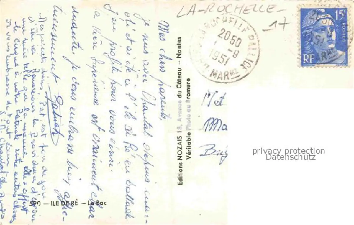 14118674 LA ROCHELLE 17 Charente-Maritime Custave Perreal La Rochelle Ile de re Le Bac postalisch gelaufen Erhaltung siehe scans [IrynaD87] carte postale Iryn Katcode 11170017317300